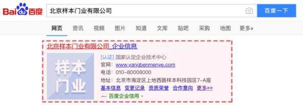 5、卡片外置企業(yè)logo、電話、官網(wǎng)、地址,減少轉(zhuǎn)化路徑;同步于百科詞條頁(yè)面露出,提升百科詞條豐富度